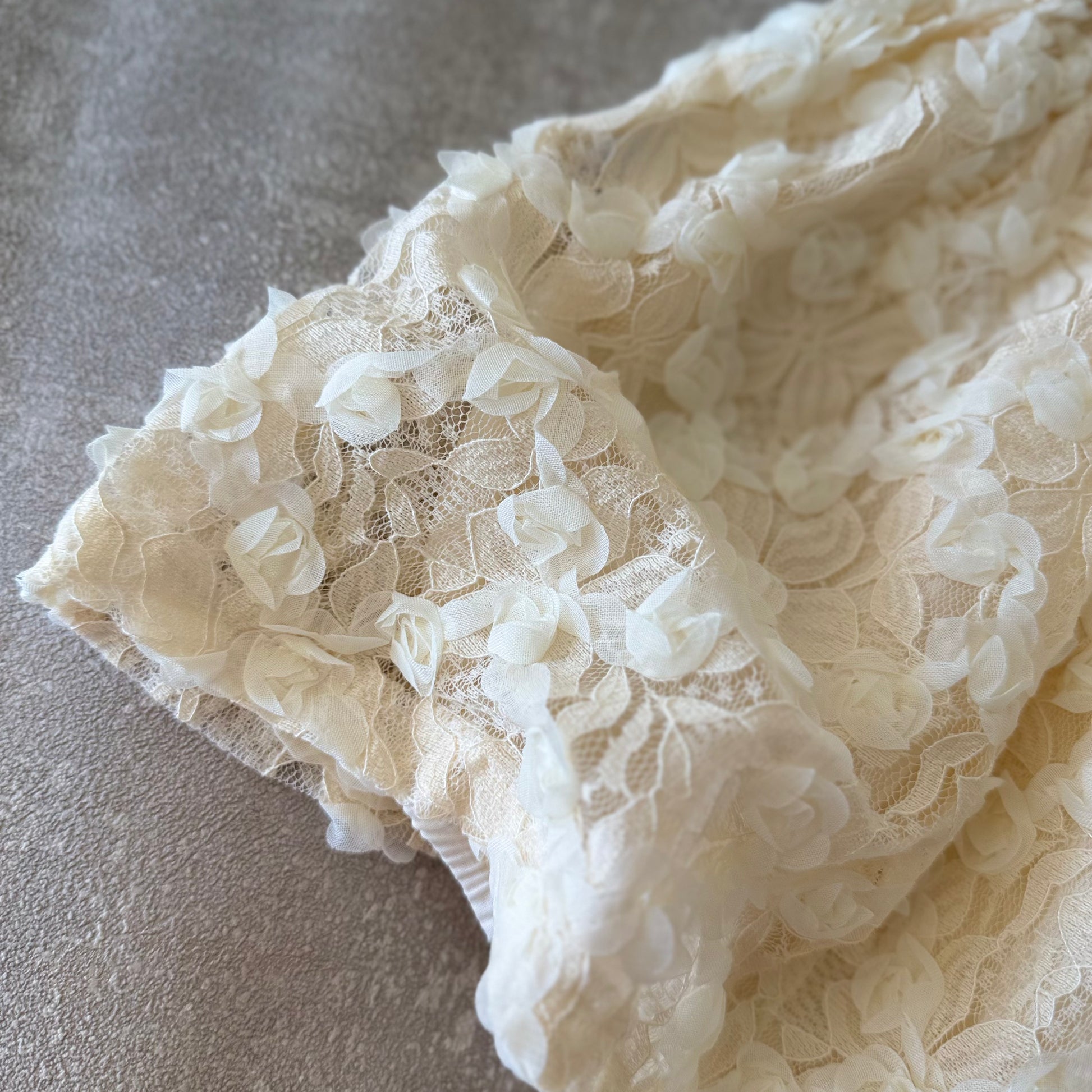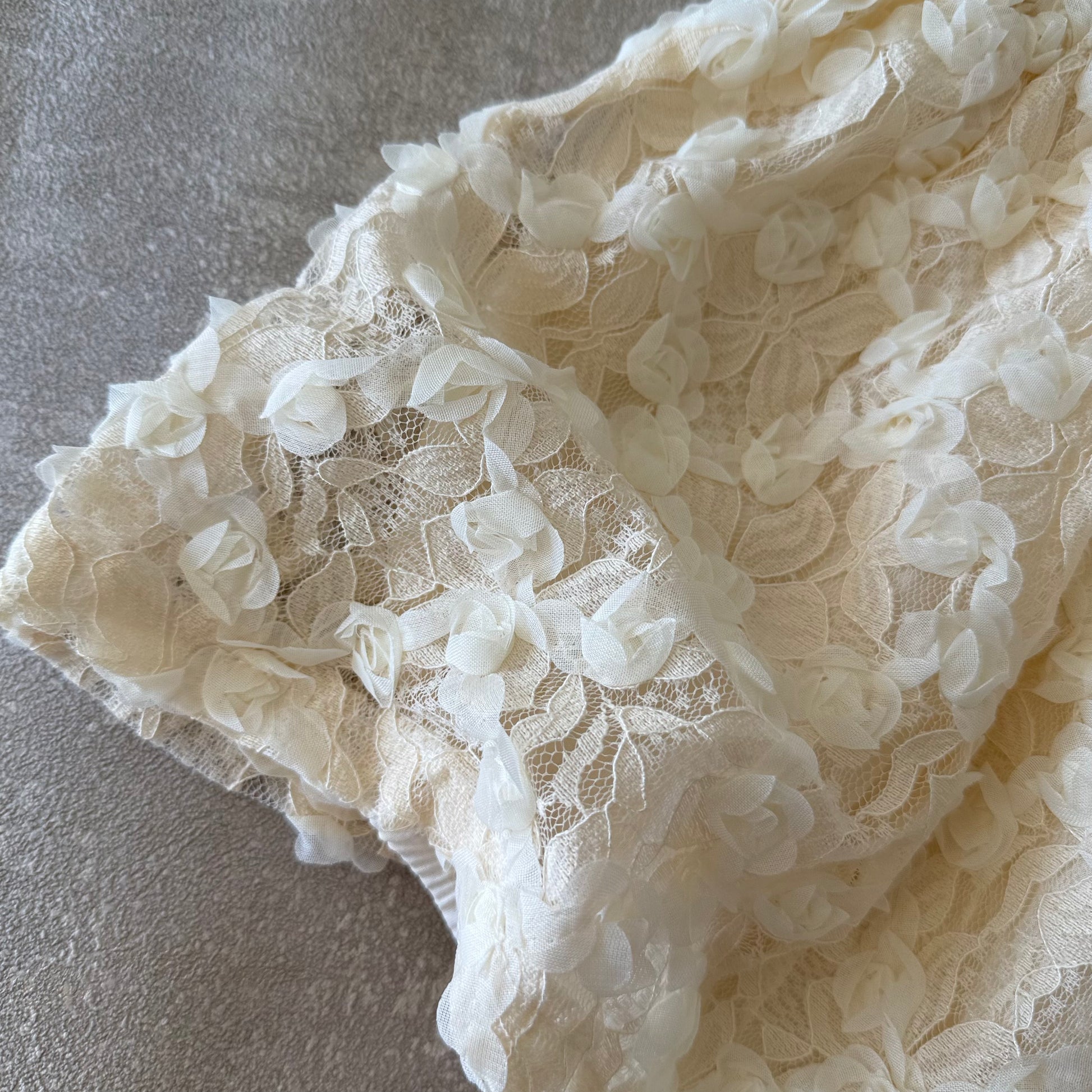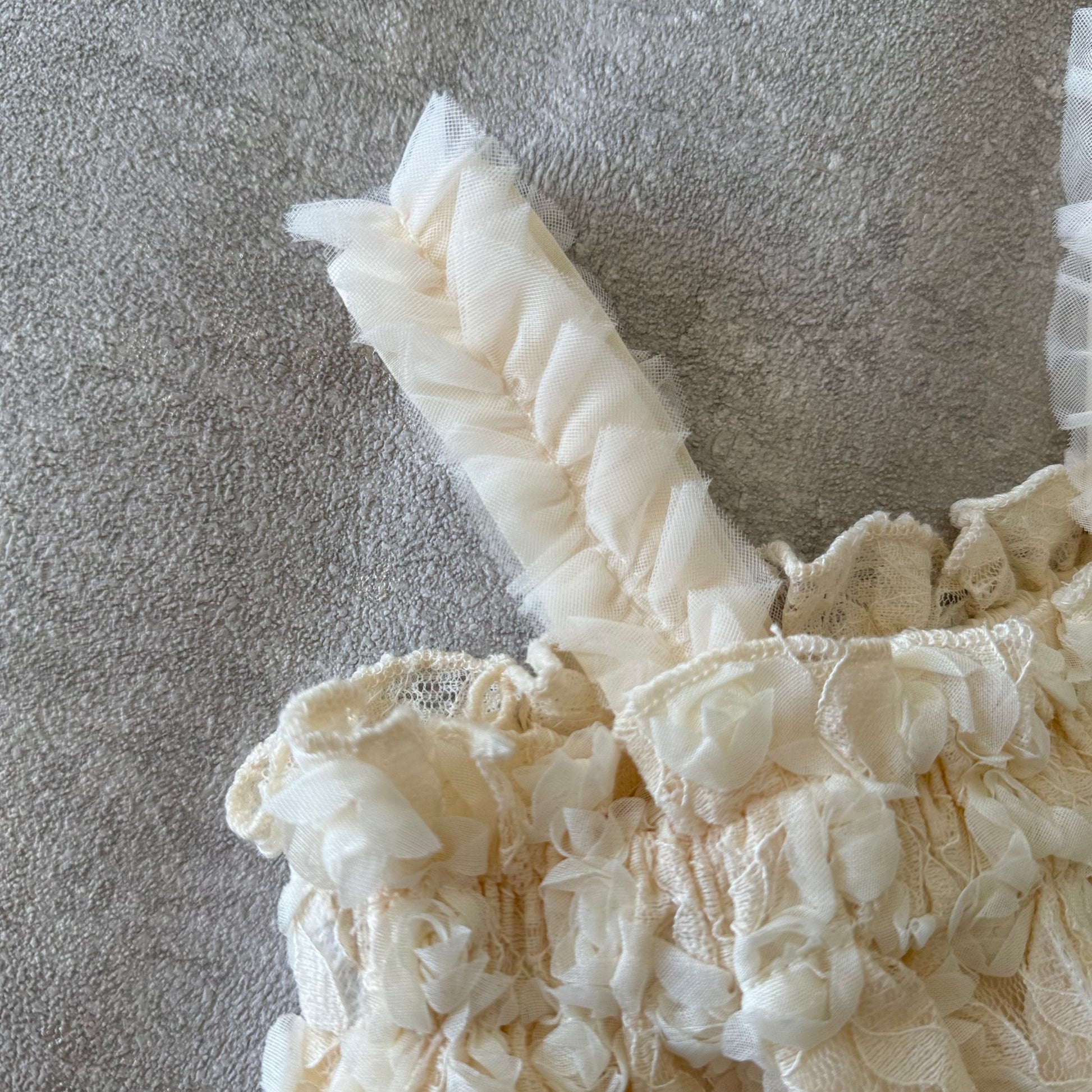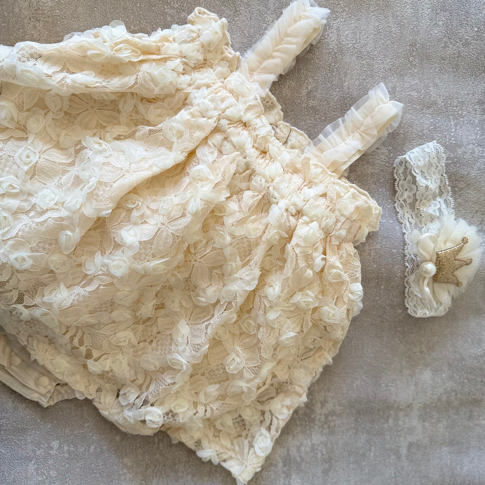Een mooie eerste jurk, ideaal voor een eerste verjaardag. Zachte stof voor een klein prinsesje. Een bloempje dat stilletjes tot bloei komt.